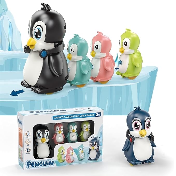 1. Magnetic Crawling Action: Each penguin in this adorable toy train comes with a magnet that allows them to connect to each other, creating an enchanting crawling train. The mother penguin leads the way while the child penguins follow closely behind, fostering imaginative play. 🧲